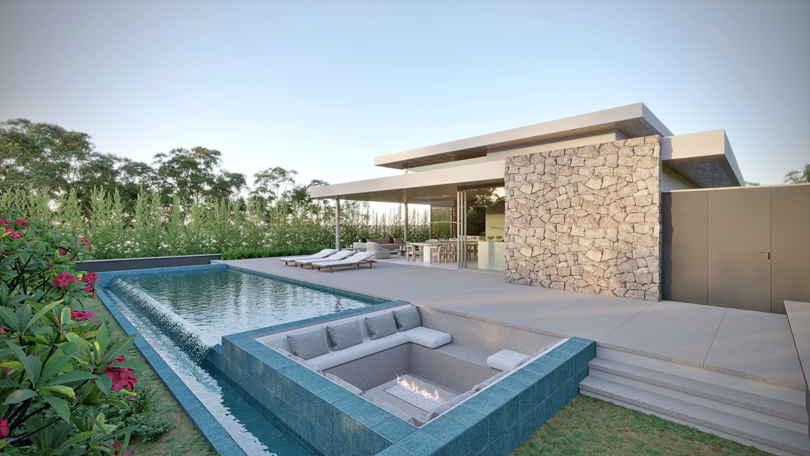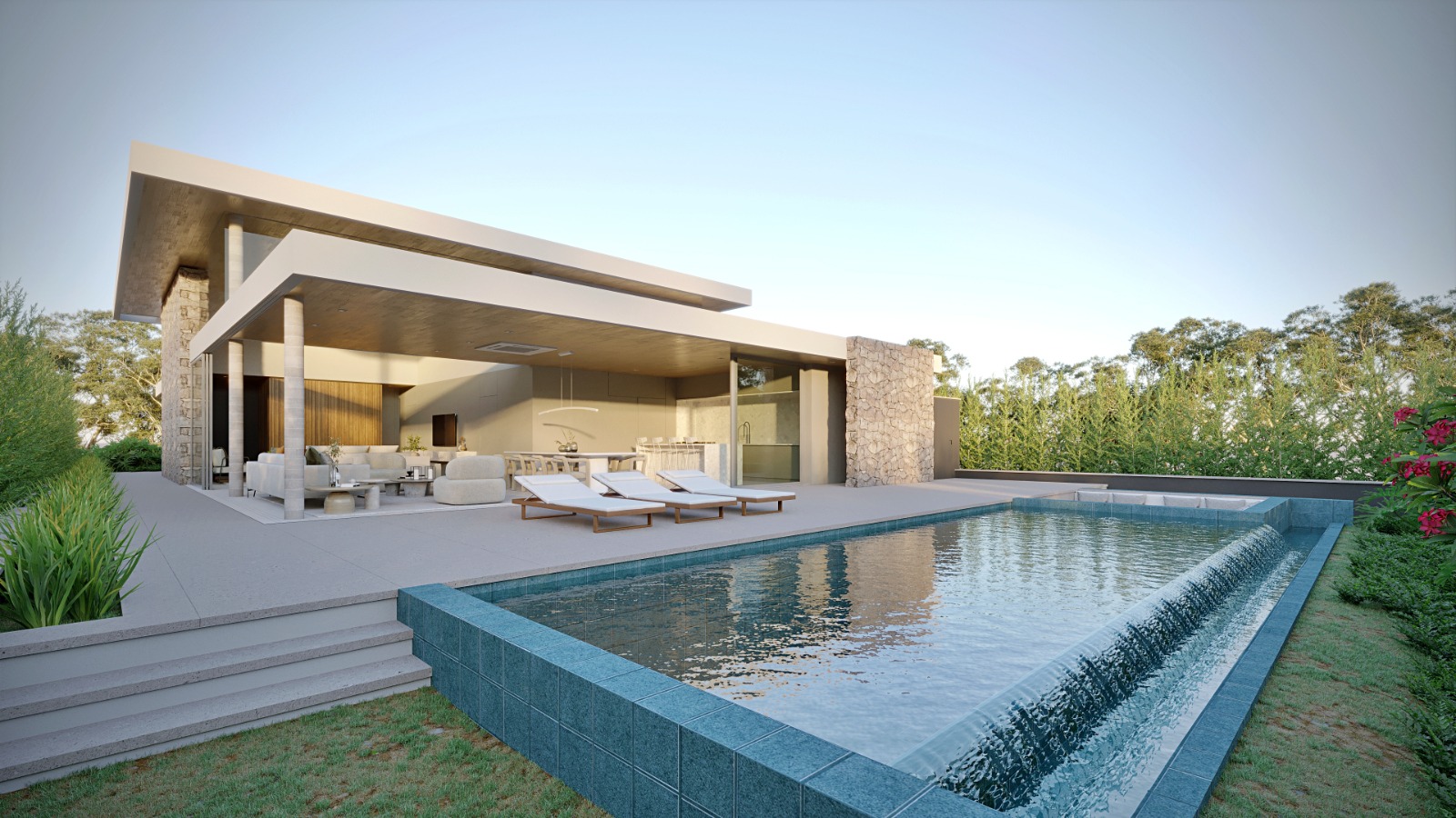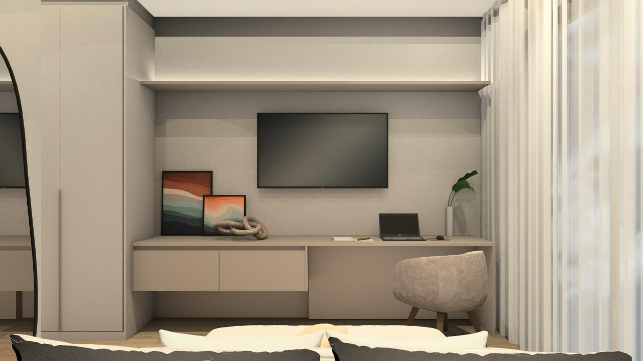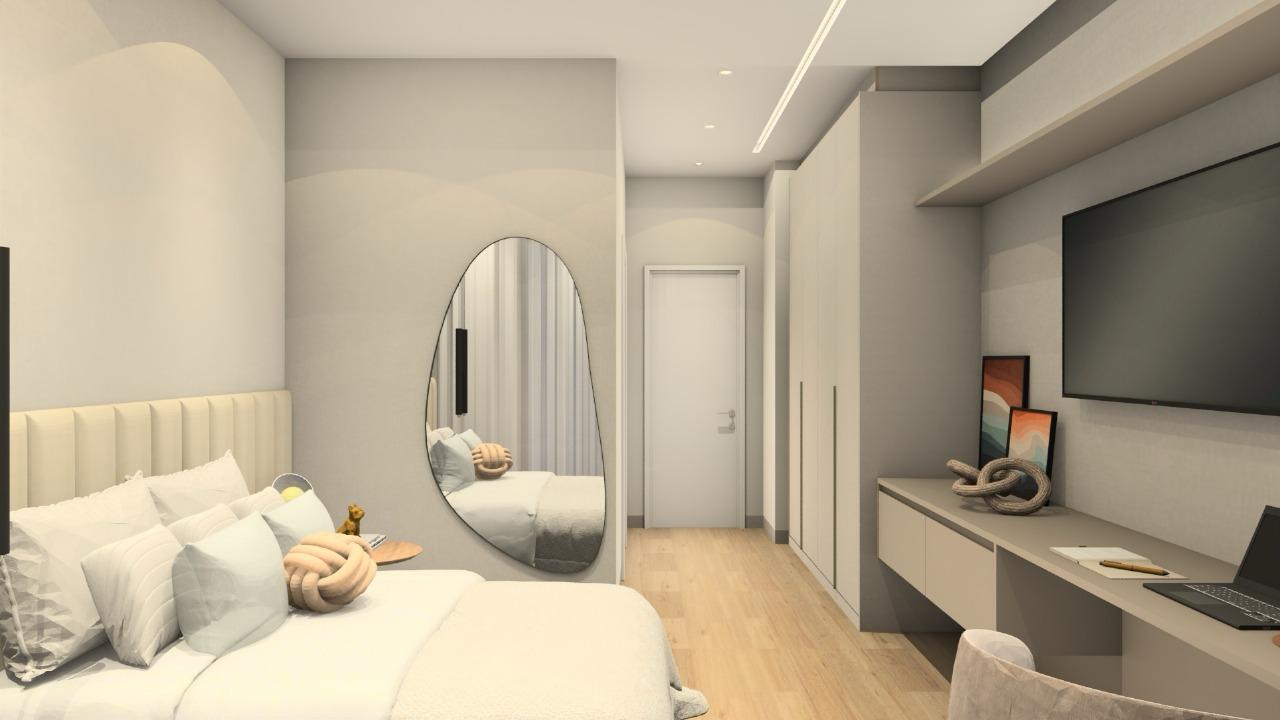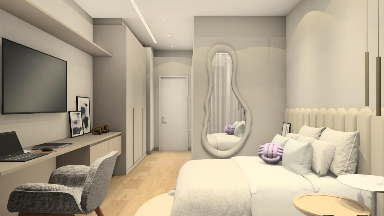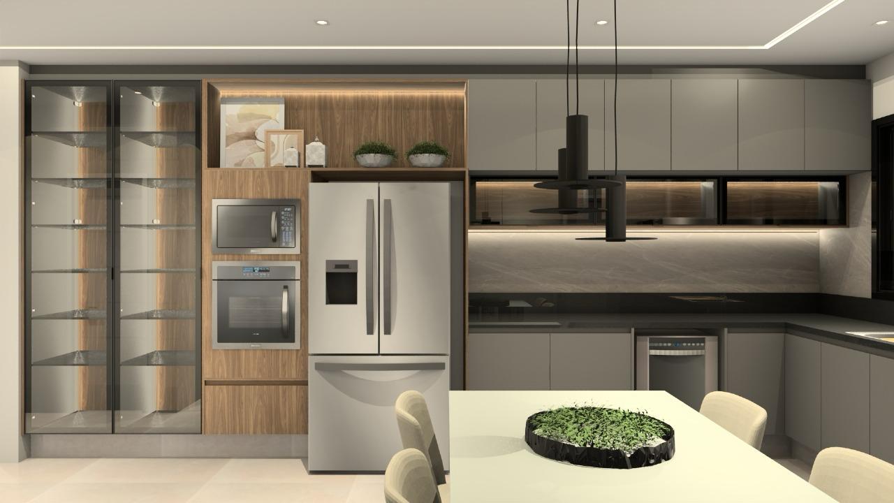 A cozinha privativa planejada garante praticidade no dia a dia, enquanto a área gourmet integrada à área de lazer é perfeita para receber. O destaque fica por conta da piscina com borda infinita e do fireplace, que criam um espaço exclusivo para momentos inesquecíveis.