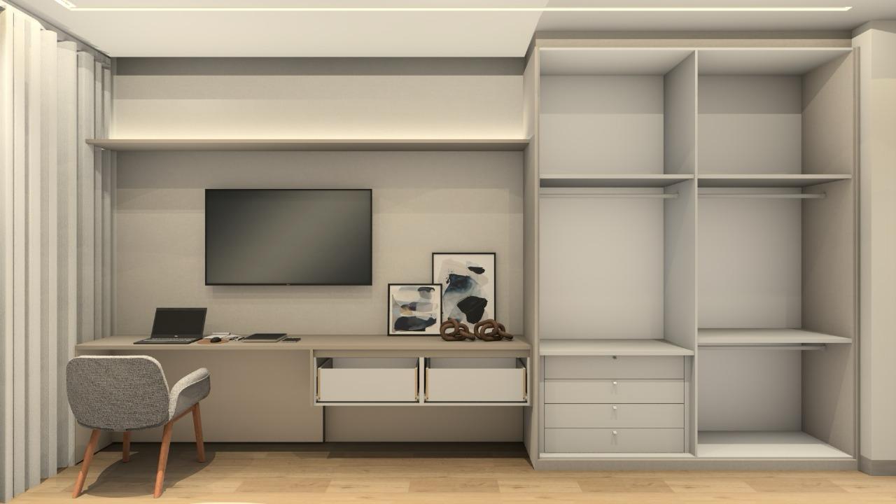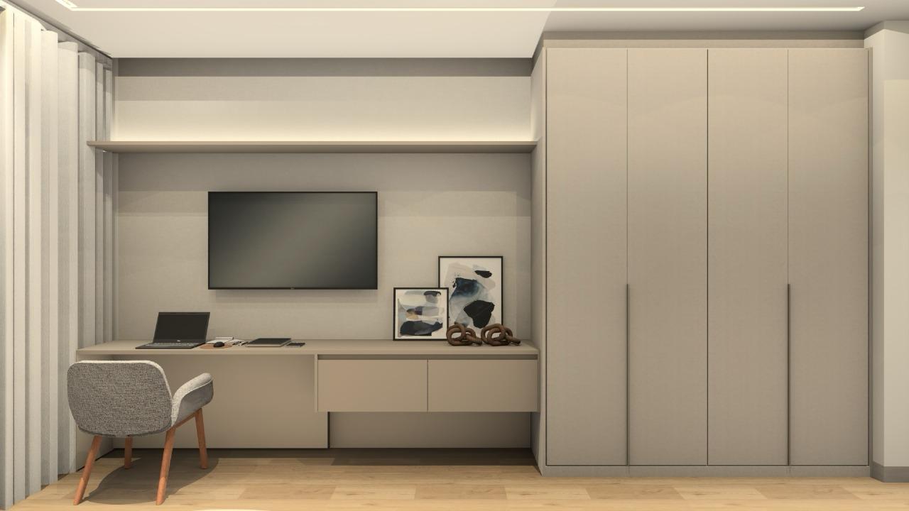 São 3 suítes completas com armários, sendo a suíte master com closet, além de escritório reversível para 4º dormitório, 5 banheiros + lavabo. As salas de TV e jantar integradas oferecem ambientes amplos, modernos e muito bem iluminados.