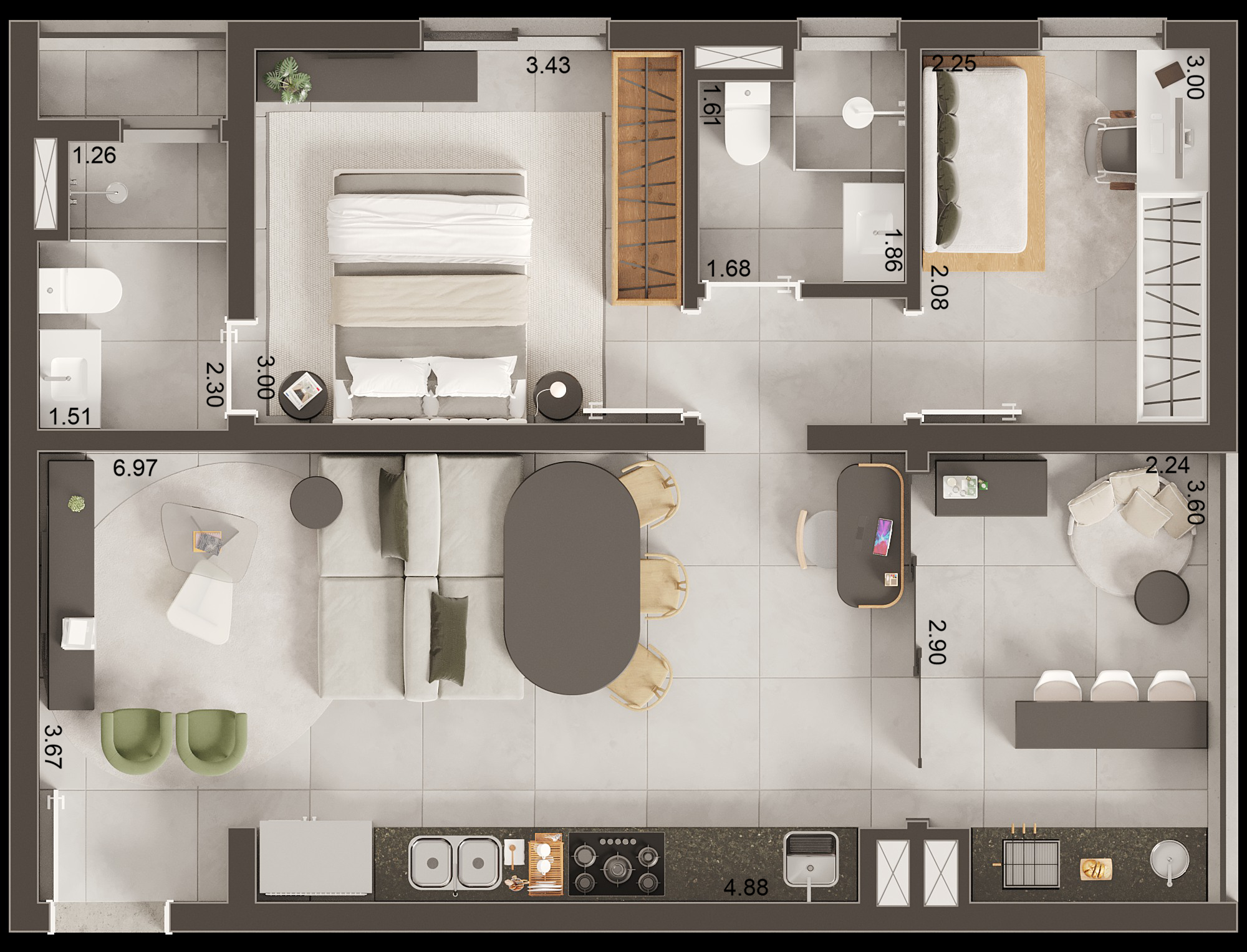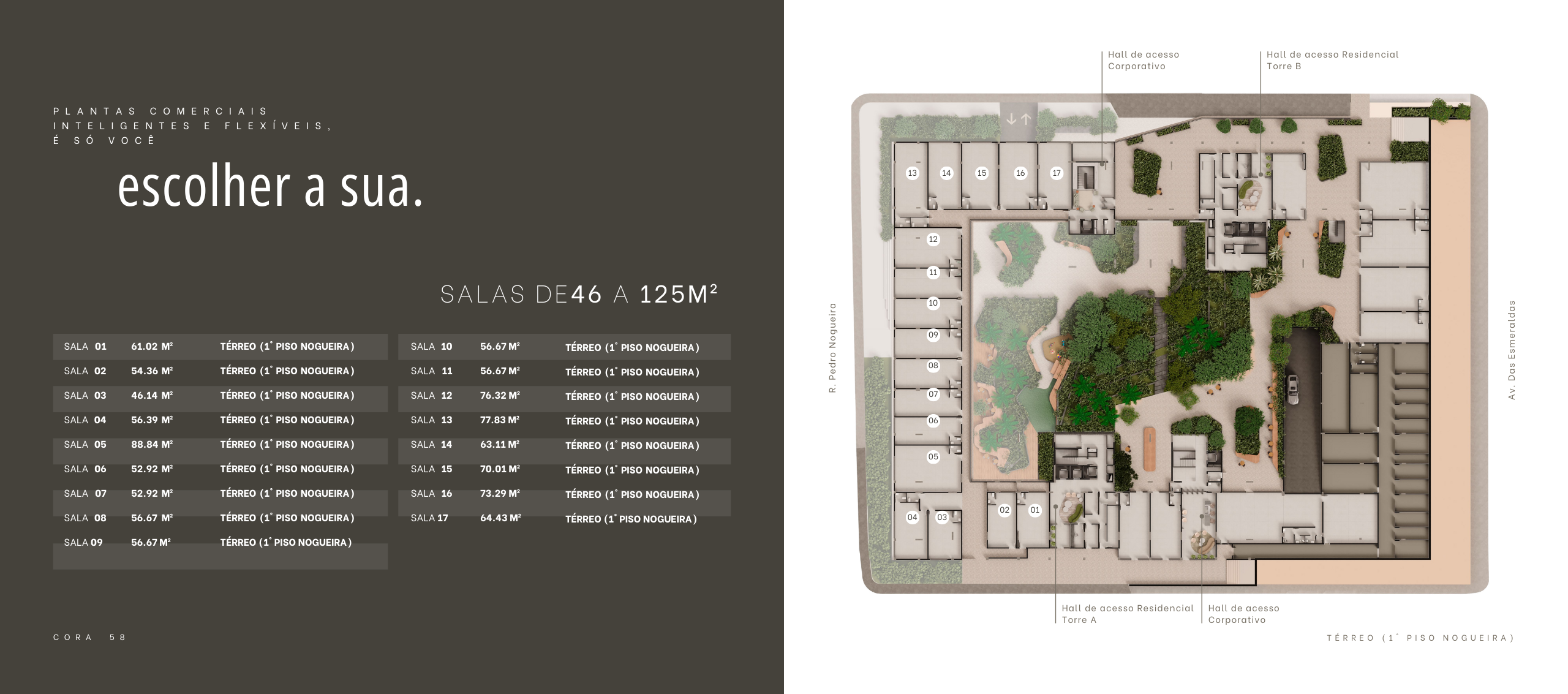 Cora nasce conectado à Avenida das Esmeraldas – e não apenas pela proximidade. O projeto foi pensado para que sua vida flua naturalmente entre o empreendimento e a cidade. O uso misto entre residencial e comercial, combinado com a ausência de muros cegos, não apenas interliga como impulsiona o desenvolvimento de uma região que não para de crescer.