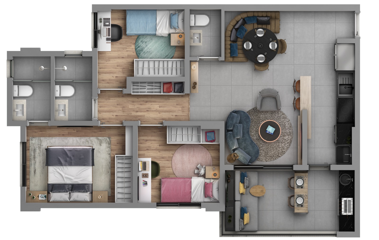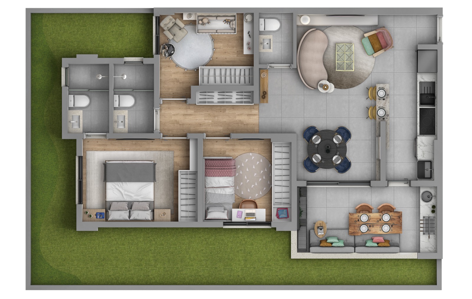 - Varanda Gourmet com churrasqueira nos apartamentos de 3 dormitórios