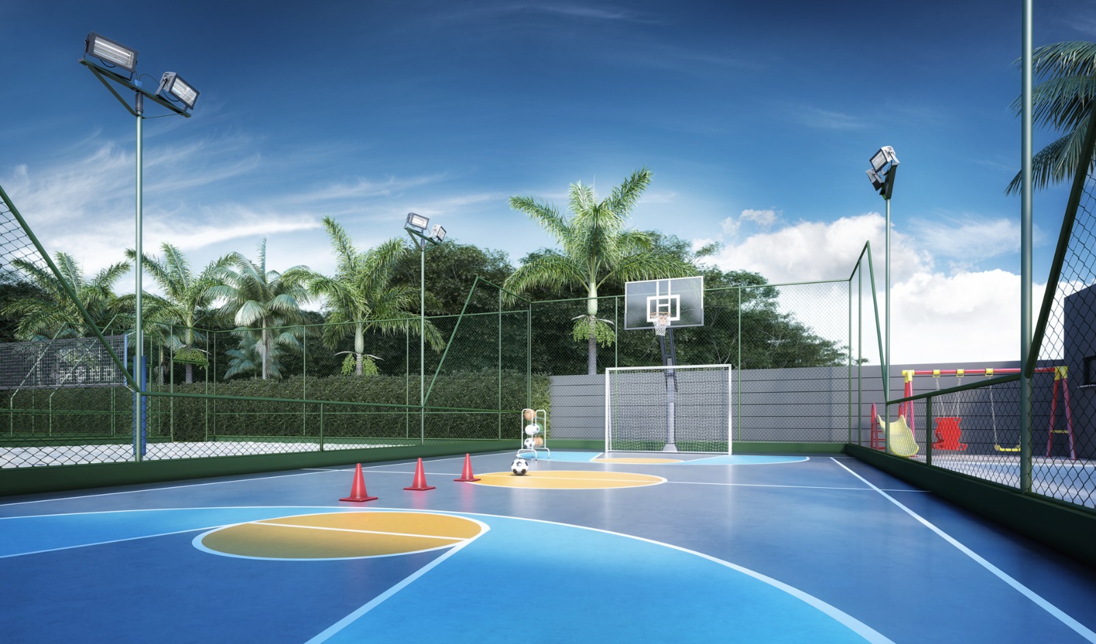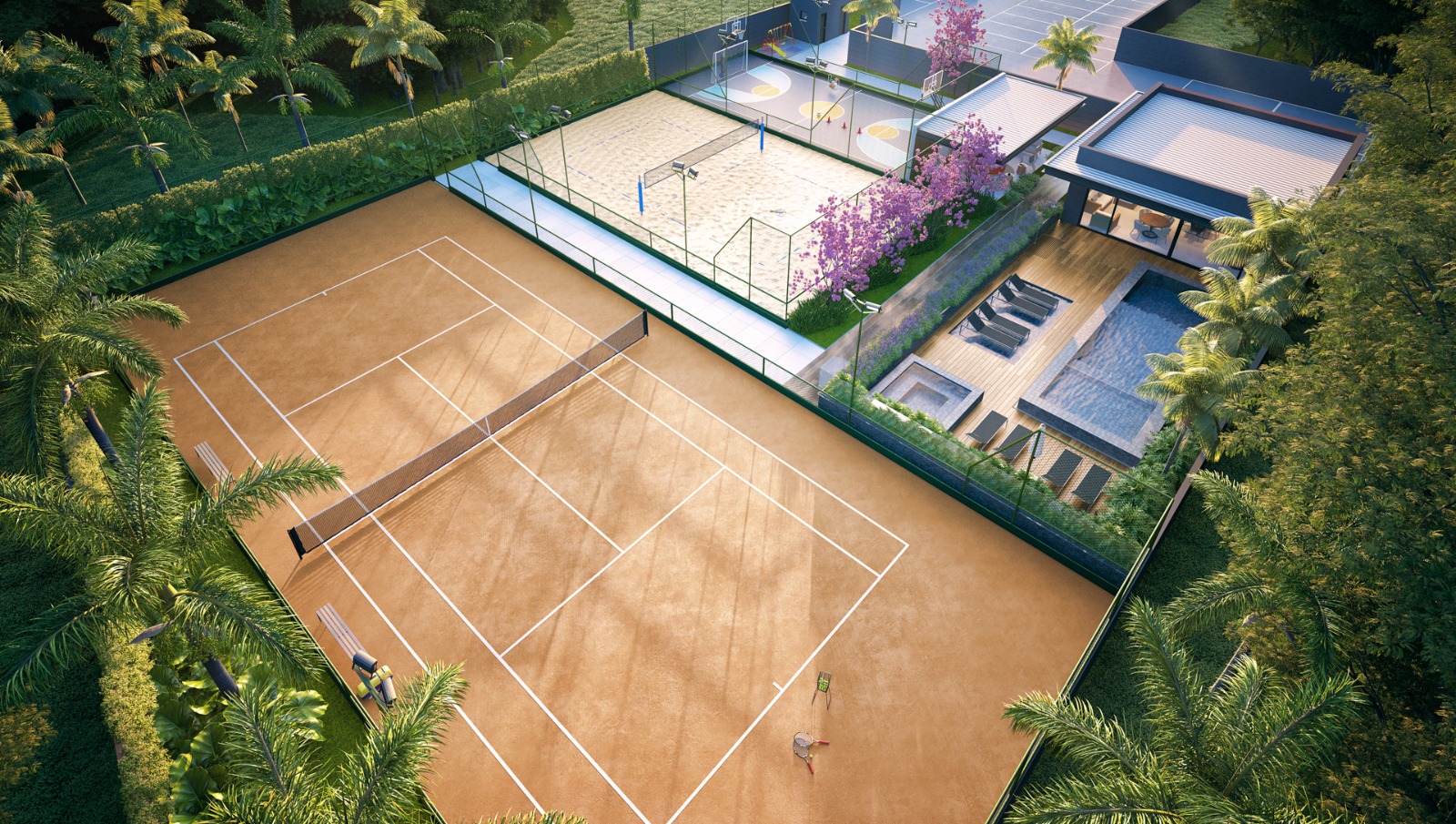 – Club e Sports com quadra de tênis, de beach tennis e poliesportiva